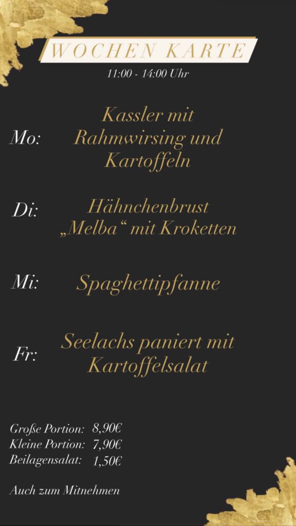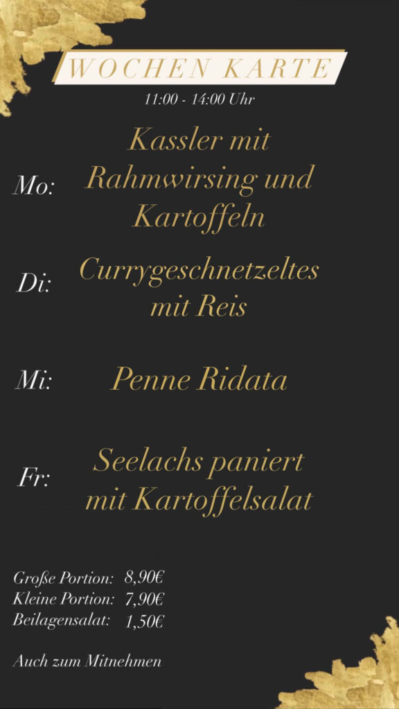 Von Montag bis Freitag (ausgenommen Donnerstag, unserem Ruhetag) bieten wir ab 11 Uhr ein täglich wechselndes Mittagsgericht – so lange der Vorrat reicht! Das aktuelle Menü finden Sie weiter unten oder im entsprechenden Story-Highlight auf unserem Instagram-Account @siebenhandl_osterhofen.